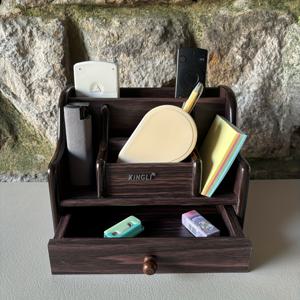 TEMU 싱리 빈티지 재활용 나무 서랍장 & 선반 - 리모컨, 펜, 메이크업 브러시 다목적 정리함 - 홈 오피스 침실 데코