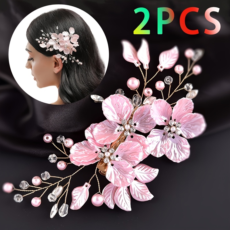 TEMU 그녀를 위한 아름다운 핑크 & 화이트 쉘 꽃 헤어 포크 - 브리드 웨딩 헤어 액세서리, 라인스톤 & 실버 , 여성 & 소녀를 위한 꽃 디자인, 브리드 웨딩 헤어 액세서리, 웨딩 헤어피스, 라인스톤 장식