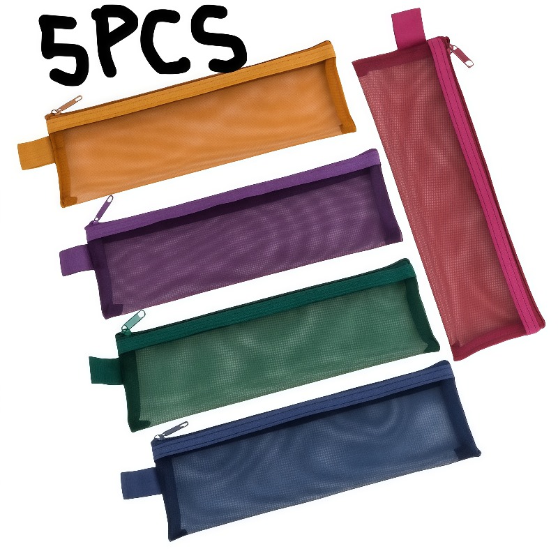 TEMU 5개 휴대용 튼튼한 나일론 메시 메이크업 브러쉬 보관 가방, 다양한 색상으로 제공, 투명한 디자인으로 보임 용이, 대용량 립스틱 보관 가방, 다기능 보관 가방, 학교, 사무실 및 여행 필수품, 연필 케이스