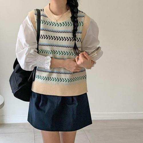 [다잇템][다잇템] 여자 2종 리프패턴 스웨터 블라우스 베스트 흰색 세트_20103663_588872
