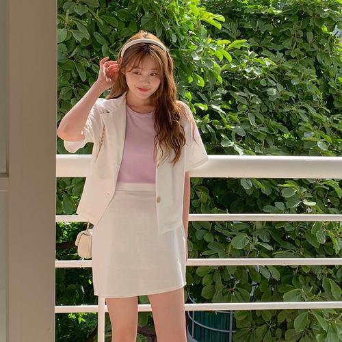 [다잇템_패션]여자 쁘띠 반소매 백밴딩 치마 린넨 재킷 세트