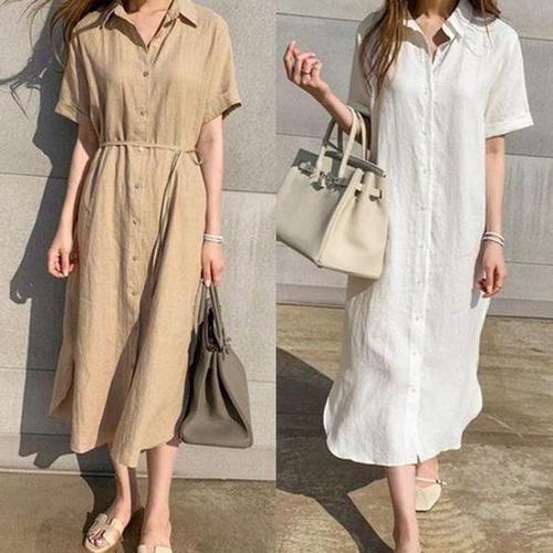 여성 여름 패션 시원한 린넨 롱 루즈핏 원피스 셔츠