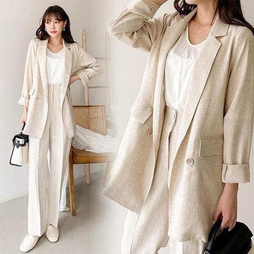 [드리다]봄 여름 린넨 모던 빅사이즈 스판 박스핏 긴팔 자켓 하객 모임 오피스룩 미시 중년