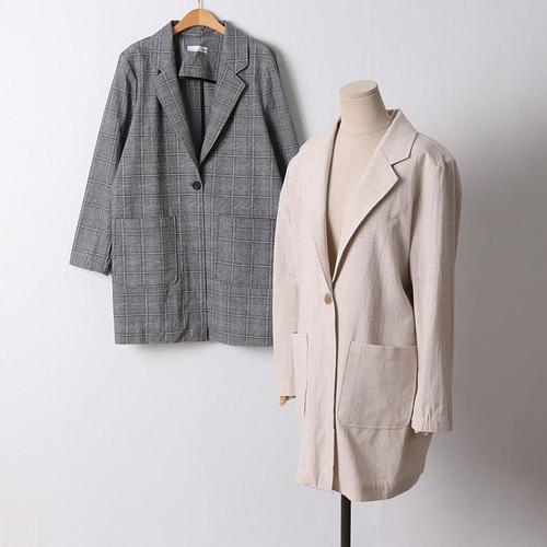[셀러허브_여성트랜드패션]빅사이즈체크자켓 V003L507 웨이체크패턴린넨재킷 MO