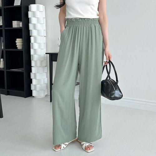 [에이치플러스몰]프릴 베이직 라미린넨 와이드팬츠