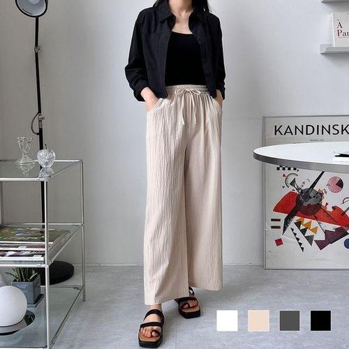 [셀러허브_여성트랜드패션]ONM 면바지 여성 바지 밴딩 와이드팬츠 여름 린넨바지