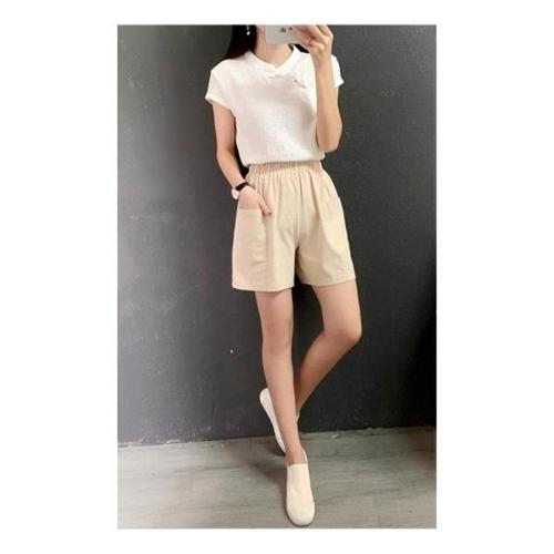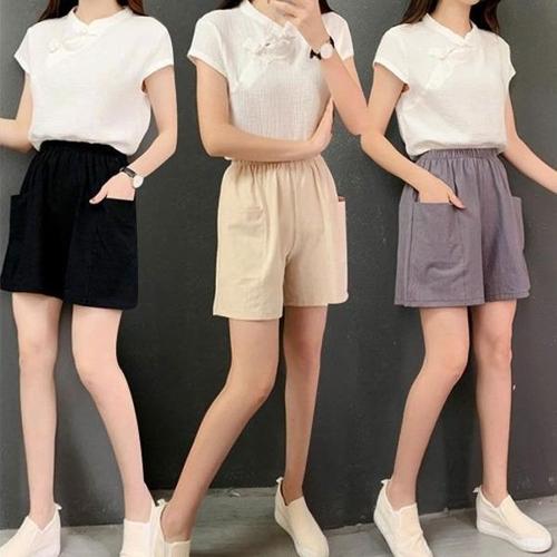 [로즈엘리]26부터 40까지 린넨 캐주얼 하이웨스트 밴딩 반바지 빅사이즈 공용바지 6컬러