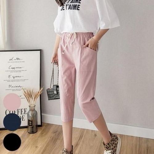 [에이치플러스몰]편안한 허리 밴딩 시원한 린넨 소재 7부 바지