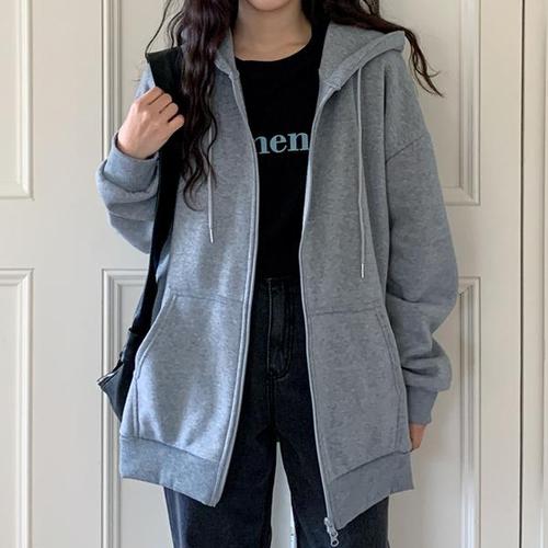 [린다샵]트레미 무지 양집업 기모 후드 집업