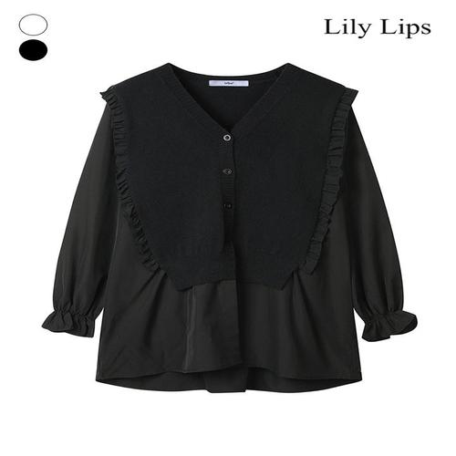 [릴리립스]프릴 니트 버튼 밴딩 소매 블라우스 (YL9SH001)