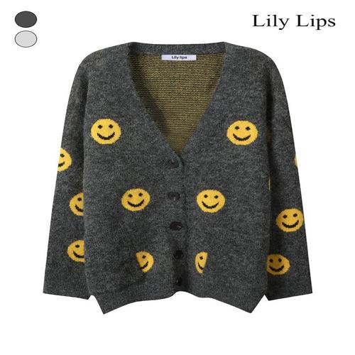 [릴리립스]해피 페이스 V넥 니트 가디건 (YL9KG001)