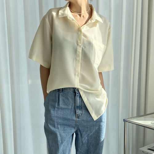 H스타일(CN)릴리블라우스 봄 여름 여성 블라우스 반팔 브라우스 라운드 기본