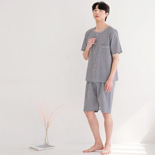 [찌니야]국내제작 남성잠옷 릴리체크 40수 순면 반팔상하세트