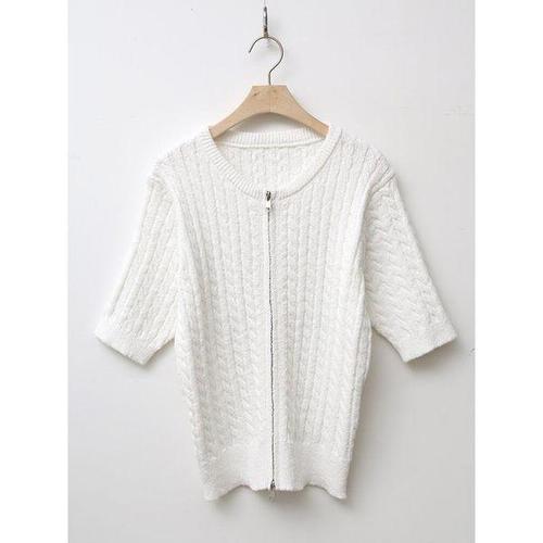 [샵앤]릴리 꽈배기 여성 라운드 투웨이 집업 반팔 니트 가디건 BONG-WCD-3207-아이보리
