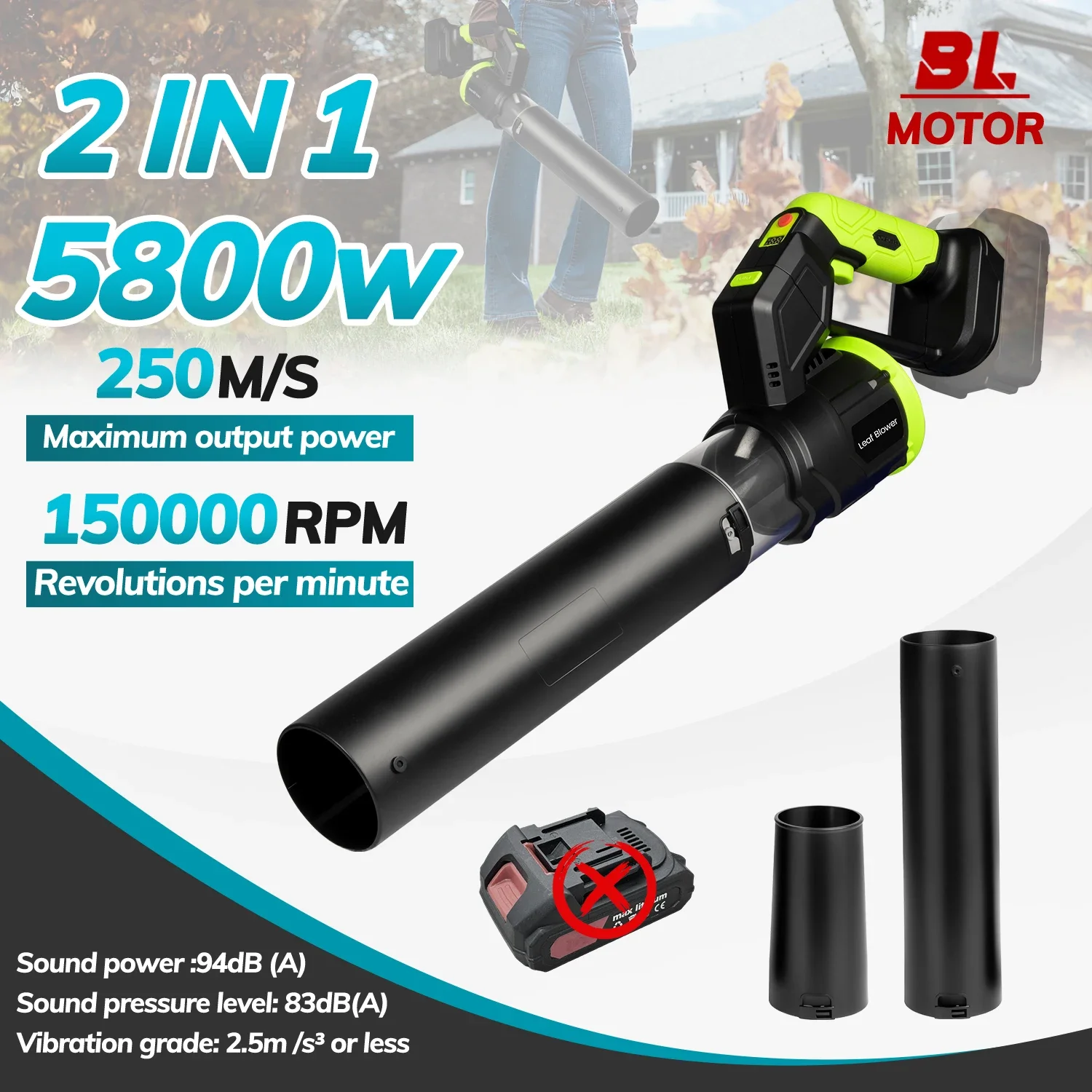 ONEVAN 5500W 무선 브러시리스 전기 에어 블로워, 마키타 18V 배터리 핀 호환, 낙엽, 눈, 먼지 제거용 무선 송풍기