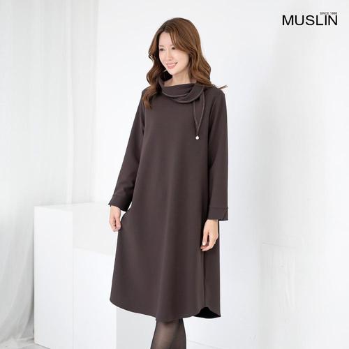 [모슬린]엄마옷 카라 타이 기모 정장원피스 MQG125277 마담 미시 중년여성 빅사이즈 할머니옷 50대 60대 ..