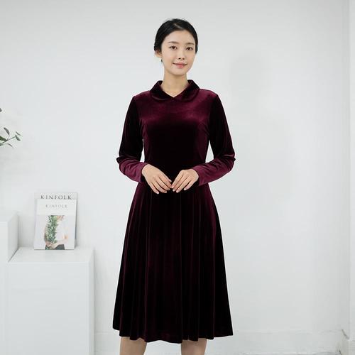 엄마옷 벨벳 무지 카라 원피스 OP516369 중년여성의류/60대/70대/마담/빅사이즈/할머니옷