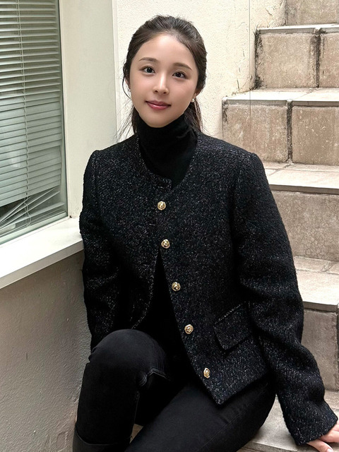 [시크폭스] 로미 골드 버튼 트위드 자켓_61JK1702