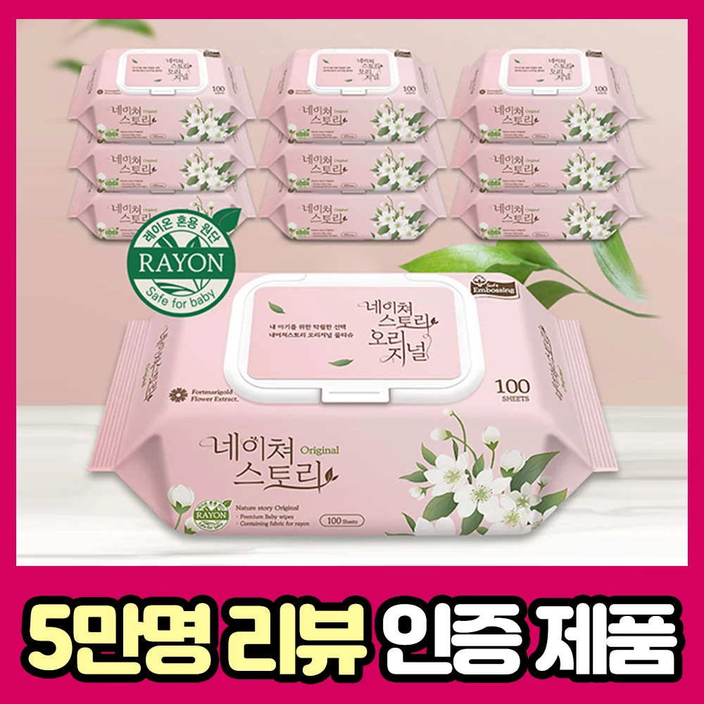 [알리 단독특가/쿠팡리뷰 5만개] 두껍고 부드러운 엠보싱 캡형 오리진 물티슈 100매 10팩/20팩