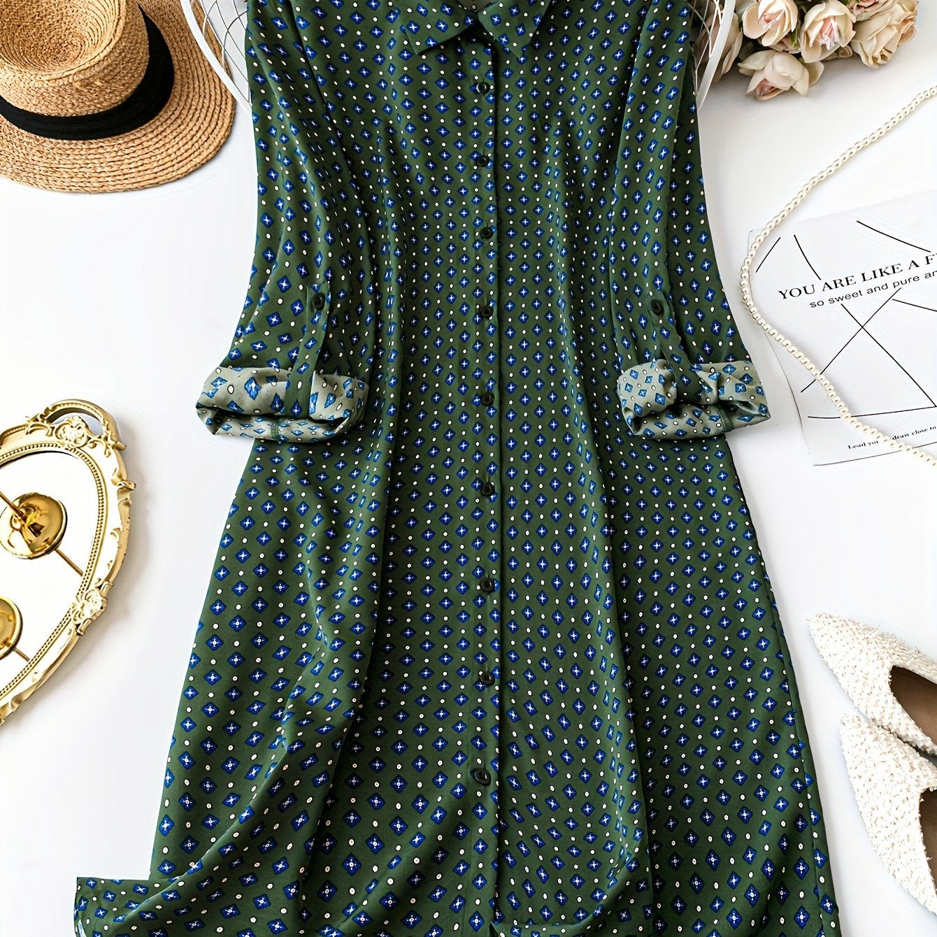 TEMU 플러스 사이즈 - 곱슬머리/솔리드 컬러 셔츠 원피스/스타일리시 여성 의류