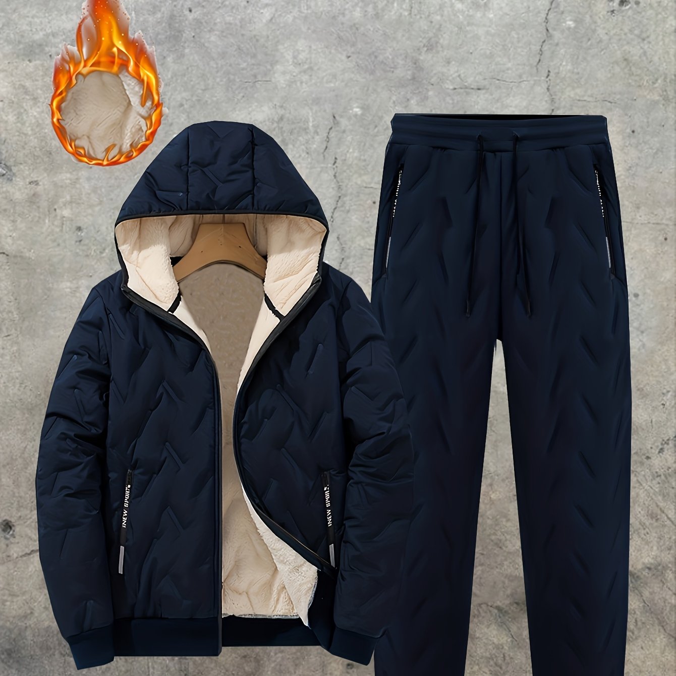 TEMU Men's Winter Solid Col Thiened Flee Casual Sptswear Set