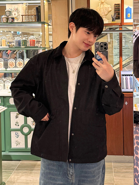 [마인드브릿지 맨] 카라 배색 데님 라이크 워크 점퍼