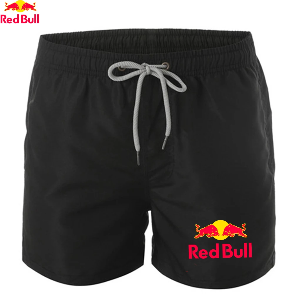 새로운 여름 레드 불 브랜드 인쇄 남자 반바지 통기성 빠른 건조 더블 레이어 모래 메쉬 라이닝 러닝 반바지 비치 반바지