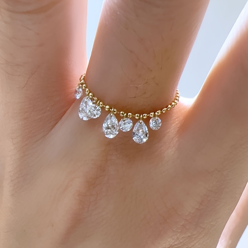TEMU ANGOL 우아한 화이트 합성 지르코니아 태슬 드롭 펜던트 링 - 조절 가능한 풀 체인, 구리 밴드, 일상 및 특별한 날에 완벽, 다용도 주얼리, 패션 주얼리, 세련된 스타일, 반짝이는 악센트, 청소년용|반지