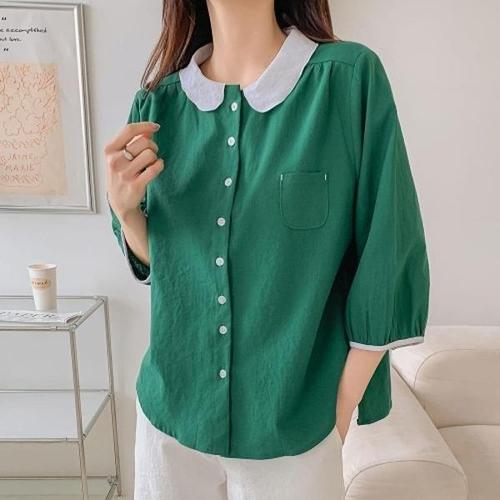 [다잇템][다잇템] 여자 벌룬 마원단 둥근카라 미니포켓 칠부 언발 블라우스_20858070_588872