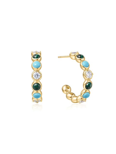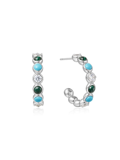 [아니아 하이에] 말라카이트 앤드 터키석 라지 후프 925 실버 귀걸이 E063-08G