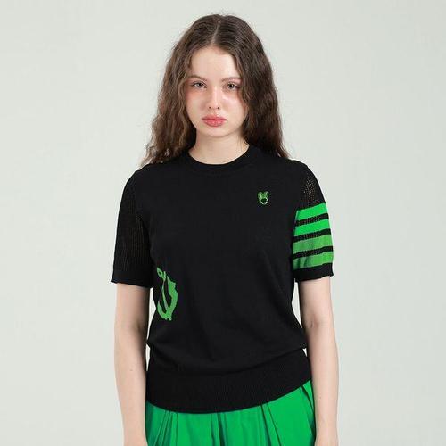 윤블리 여성 펀칭 그물 반팔 니트 [1161]