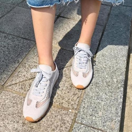 [다잇템][다잇템] 여자 스트릿패션 매끈한 망사 레더 운동화_21896953_588872