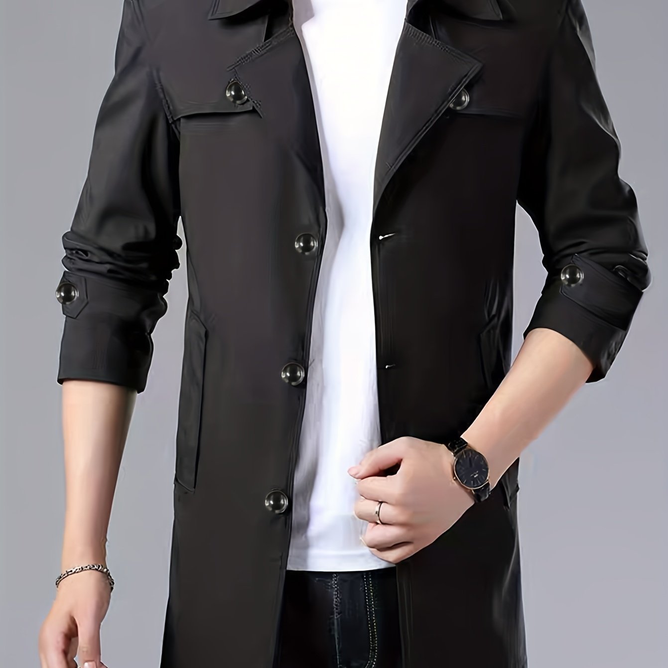 TEMU 새로운 심플 클래식 싱글 브레스트 남성 다용도 미드 길이 남성 편안한 피부 친화적 남성 상의 남성 재킷
