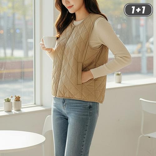 ★1+1★[유니제이] 레시 퀼팅 패딩 조끼