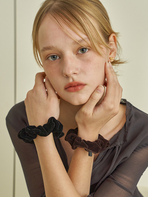 [쎄꼰도] [선물포장]쉬미어 미니 벨벳 스크런치 머리끈_블랙_다크브라운