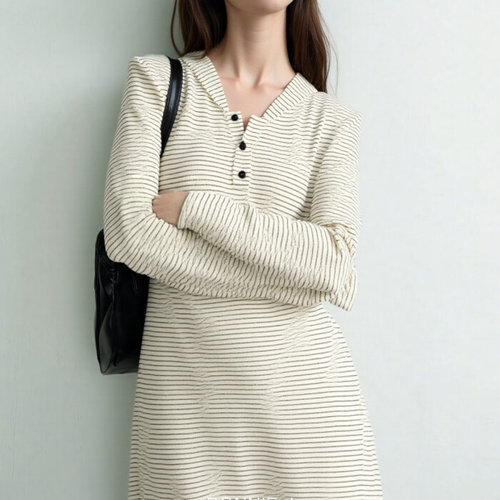 보니제이 / 슬림핏 베이직 스트라이프 머메이드 플레어 롱 간절기
