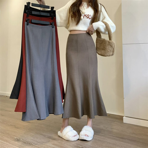 [신상오픈런]여성 심플 펀칭 디자인 머메이드 롱 스커트