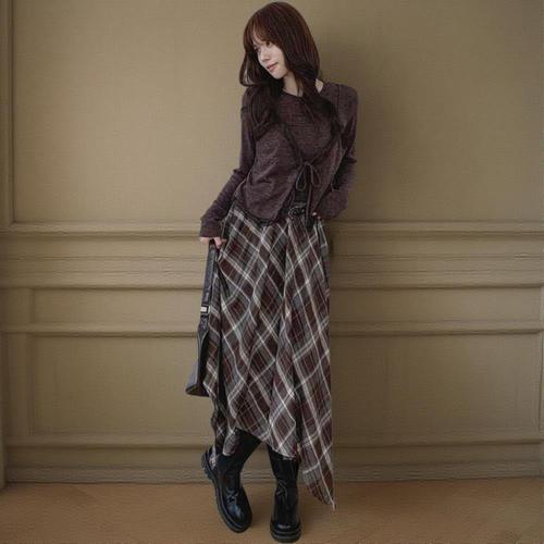 TEMU 세련된 신상 하이웨이스트 스커트. 다양한 의상에 잘 , 몸매를 부드럽게 연출합니다.