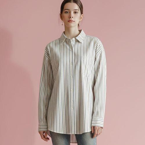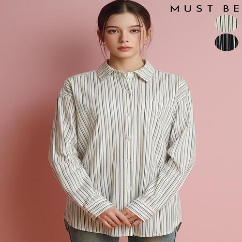 [머스트비]여성 루즈핏 버티컬 스트라이프 셔츠