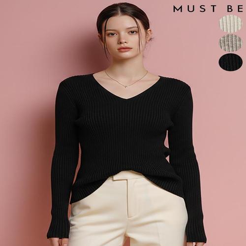 [머스트비]여성 골지 브이넥 슬림 니트