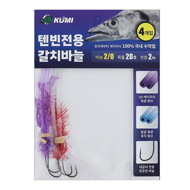 쿠미 국산 프리미엄 텐빈 갈치 바늘 채비 UV케이무라 축광 4개입
