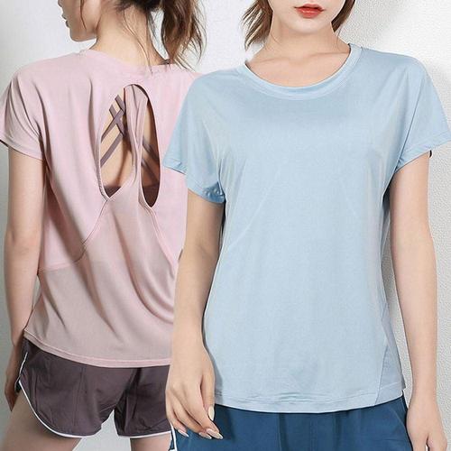 [에이치플러스몰]뒷면 메쉬 스트링 투웨이 요가 반팔 1P 운동복 티셔츠