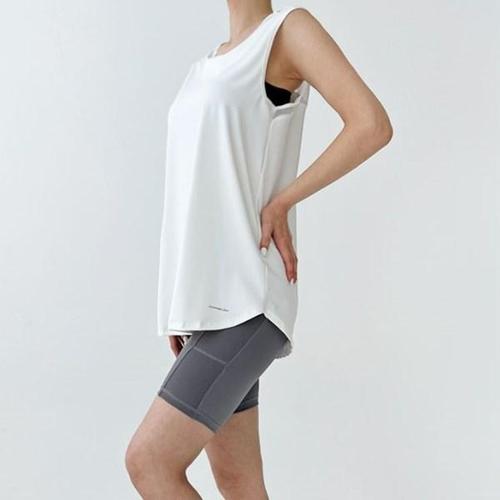[옷자락] 여성 운동 메쉬 민소매 티셔츠 레깅스 5부 반바지 세트