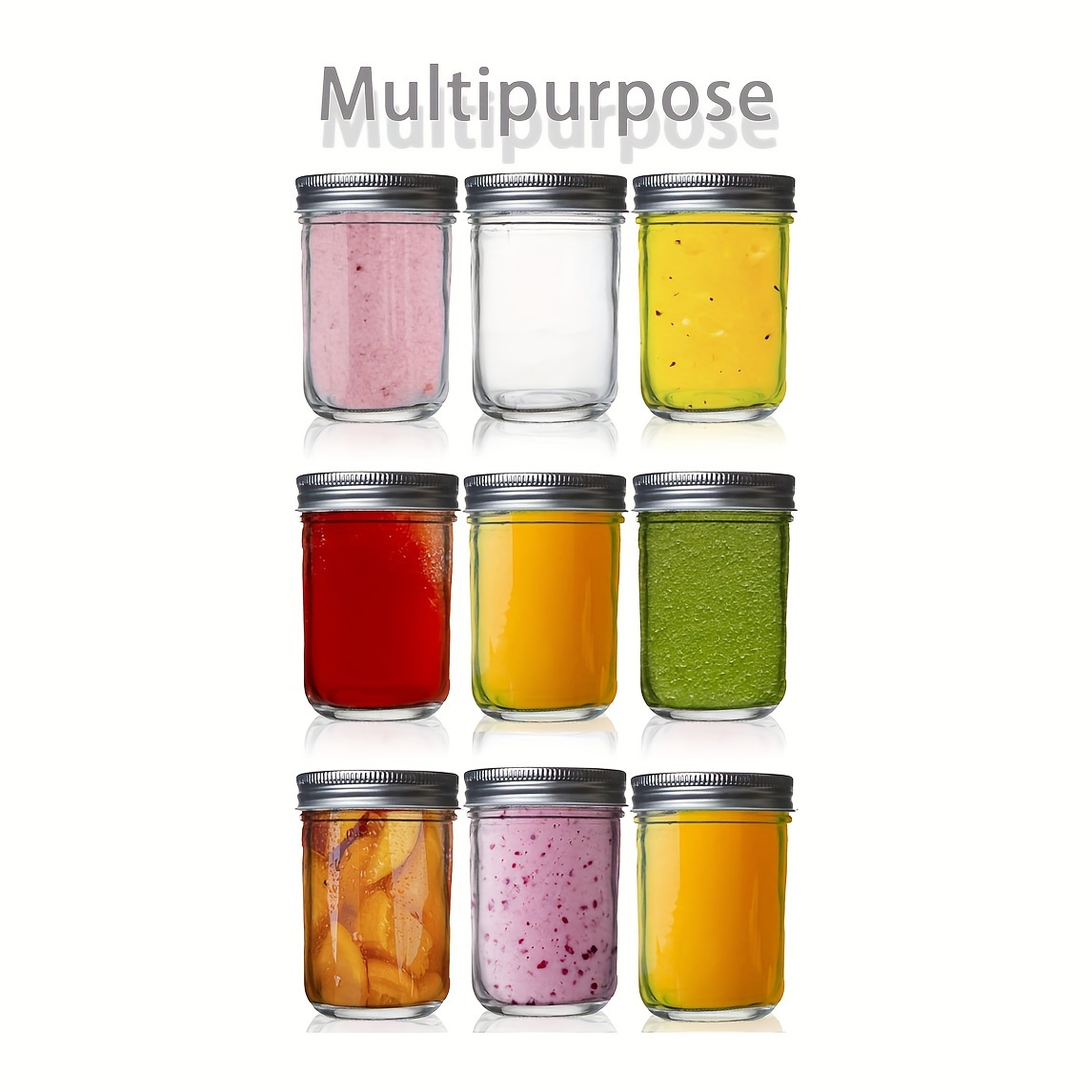 TEMU 9개입 일반 입구 유리 메이슨 자, 은색 금속 밀폐 뚜껑 유리병, 식사 준비, 음식 보관, 통조림 제조, 음료, 오버나이트 오트밀, 잼, 젤리, 건조 곡물, 샐러드, 요거트 등에 사용 (8.8oz)