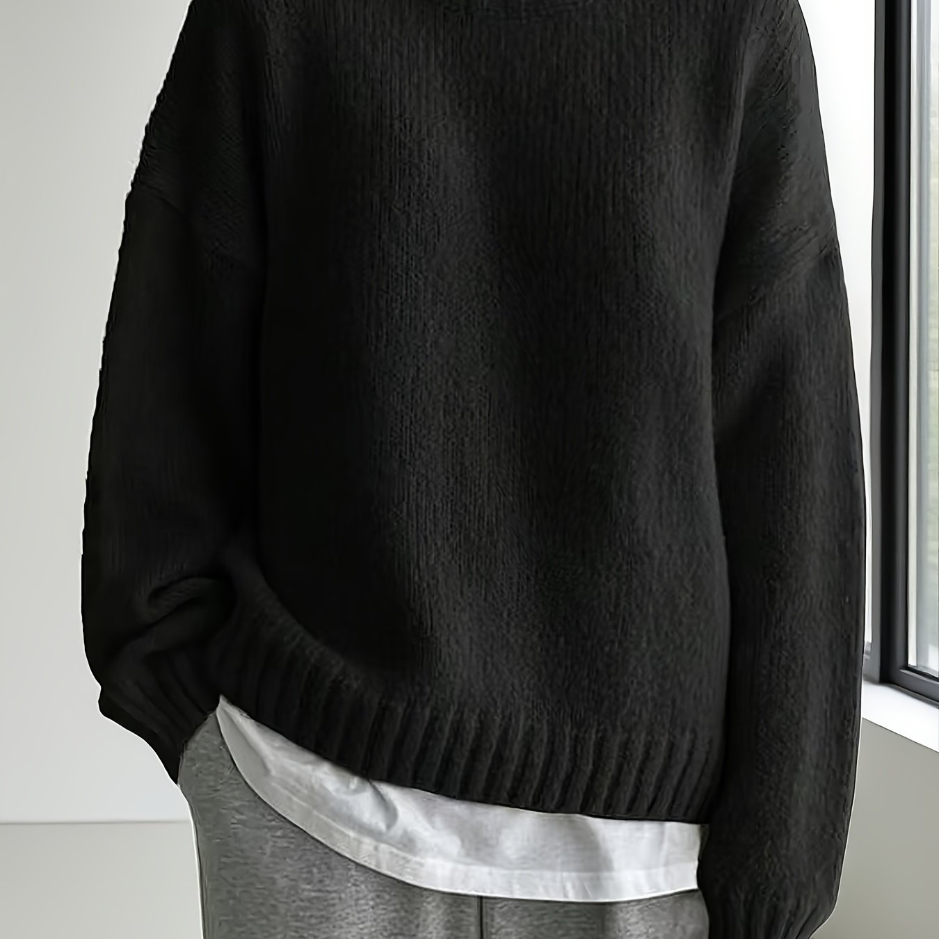 TEMU 오버사이즈 라운드넥 긴팔 솔리드 컬러 풀오버 스웨터