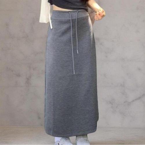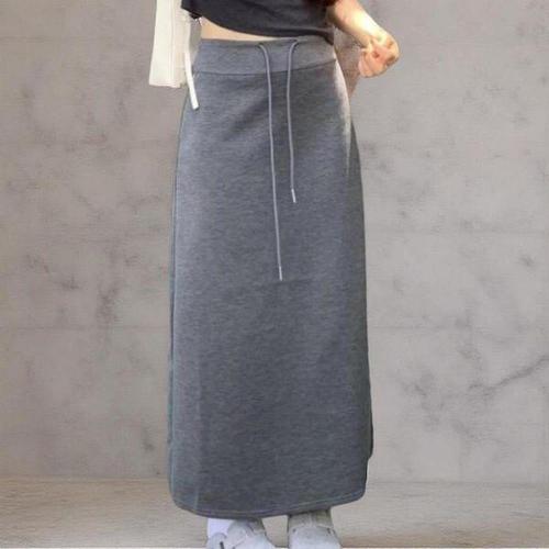 [다잇템_패션]여성 베이직 메탈패치 슬릿 롱 원컬러 스커트
