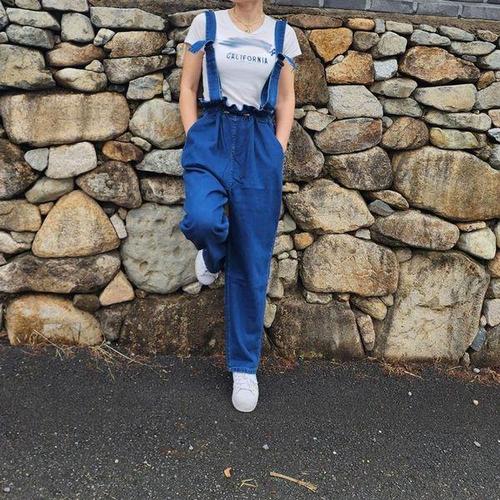 와이드핏 여성 점프수트 청멜빵바지 데님통바지