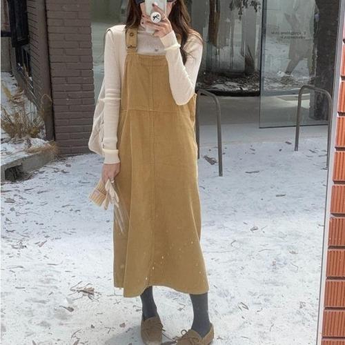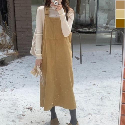[엄지척]코듀로이 멜빵 롱 원피스 가을 겨울 캐주얼 베이직_19951428_667501