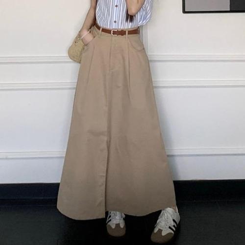 [엄지척]앞트임 코튼 체형커버 A라인 롱 스커트 치마 벨트세트_19957881_667501