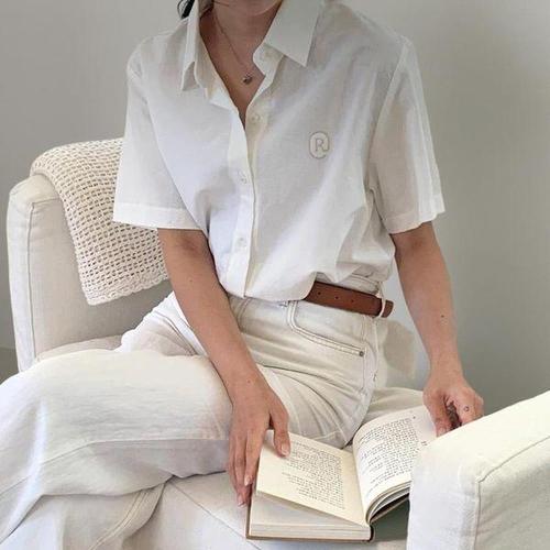 [신상오픈런]여성 코튼 반팔 셔츠 자수 스트레이트 디자인